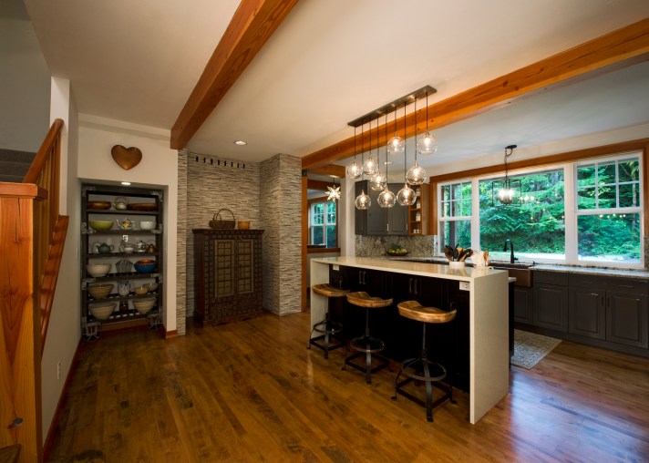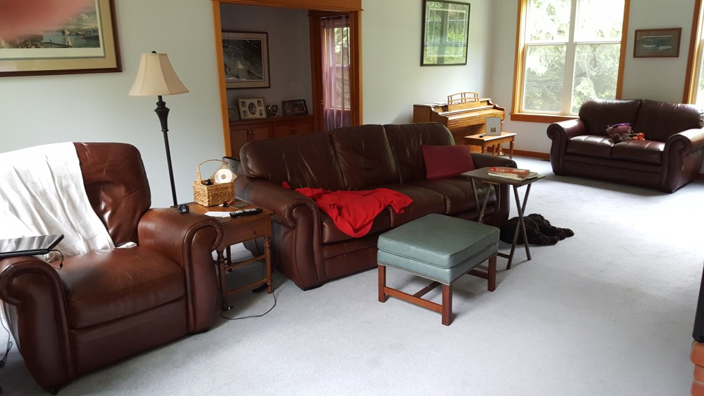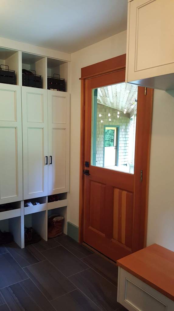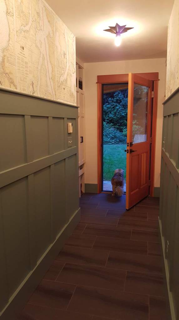 When I moved out to Bainbridge in May of 2017 to live with Luke, he had been living there by himself for about 10 years. He had previously had a long term girlfriend who lived there on weekends but, other then lawn mowing and basic maintenance there had not been much upkeep to the house. With 2 kids with various interests who lived there to varying degrees over the years and a demanding profession as Assistant Fire Chief on the Island, Luke had little time or energy to devote to the house. Before I moved out I had been there two times previously, once in 2010 and then 7 years later a couple of months before moving, in February of 2017. I must confess, other than a cursory review of the house I really didn’t pay too much attention to the condition of it, the times I was there my focus was on other than the physical space. In any case, I remember clearly the day after I arrived – after our 6 day drive across country in the rented Suburban with 3 dogs & a cat, after the epic push to get my less than 1,100 sf condo ready for the market then to shed what I no longer needed or wanted and pack the rest, and the nightmare with the HORRIBLE movers I had hired, when Luke went to work leaving me to assess my new home… I burst out crying. Granted, I might have been just a tad tired but, looking around I 1. had no idea where to start and 2. how to broach the subject with Luke that he / we really needed to spend some time and money fixing up the house. Talking to Luke about spending money is, well… a delicate dance but, to my surprise he was actually open and really quite “excited” about the prospect of embarking on some house renovations. Little would he realize to what extent “some” would evolve, I am an architect after all!