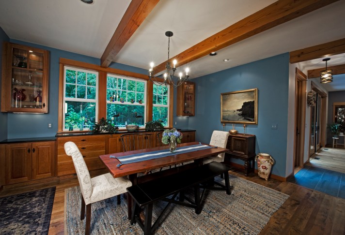 Luke & his ex-wife built their house for what would be their growing family in 1994. They had just experienced the loss of their first child due to SIDS and wanted to get out of the house they had been living in. They had bought the property with the intention of building on it eventually and “eventually” had come so, with a handshake the builder commenced. The house was huge by my east coast city standards +3,500 sf: 2 bedroom suites on the 1st floor – 1 master with walk-in-closet and large master bathroom and a guest suite and 2 bedrooms on the second floor that shared a bathroom and common room, a living room the full width of the house, dining room, kitchen with eat-in island, pantry, laundry / mud room, powder room and office with separate entrance. There was a 2 car garage with a large unfinished attic attached to the house by a large covered breezeway and walkway. I came to learn that is a very important feature in the PNW during the rainy / muddy season – 8 months of the year, as it gave you a place to take off your boats and leave them.